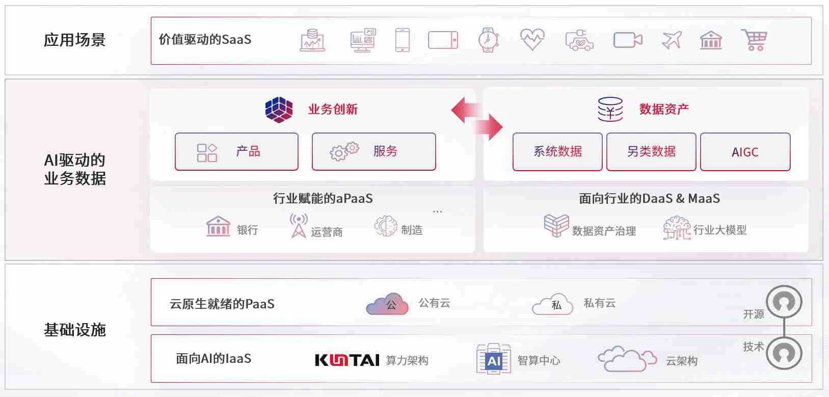 数字时代,,围绕企业数字化转型的关键要素,,9b.com数码开创性的提出数云融合战略和技术体系框架,,着力在云原生、、数字原生、、、、AI原生和信创产业上架构产品和服务能力,,,为处在不同数字化转型阶段的快消零售、、汽车、、金融、、医疗、、、政企、、教育、、、运营商等行业客户提供泛在的敏捷IT能力和融合的数据驱动能力,,,,构建跨界融合创新的数字业务场景和新业务模式,,助力企业级客户建立面向未来的核心能力和竞争优势,,全面推动社会的数字化、、、、智能化转型升级。。。